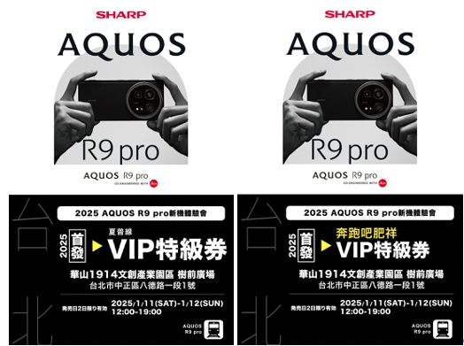 台灣夏普公司今日發佈AQUOS R9 pro(膠卷黑) 新品上市體驗會,假華山文創園區樹前廣場打造『AQUOS R9 pro 9號月台』,這個週末都會停駐在此等候大家來體驗AQUOS R9 pro手機的真實魅力,現場更有多項互動以及摸彩活動讓大家收獲滿滿。