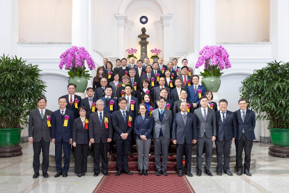 圖二:副總統蕭美琴(中)、婕樂纖創辦人呂世博與其它台灣卓越公司之授獎人。婕樂纖/提供