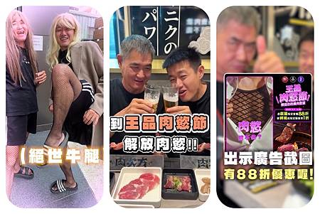 在最新上傳的影片中甚至拉著自家老爸一起爽看無碼肉片,揚言要解放肉慾,讓網友驚呼:「大晚上的,這真的能播嗎?」原來兩人以女裝扮相身穿網襪大方獻腿,搶的就是「王品肉慾節」每日每店限量名額的「一折吃燒肉」挑戰!活動集結「原燒日式燒肉、肉次方燒肉放題、金咕韓式原塊燒肉」三大品牌祭出「一折」與「88折」優惠,於4/30前完成指定任務即享優惠。