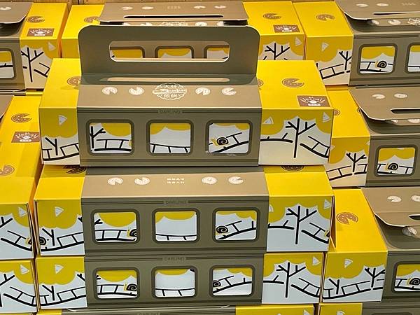 以漫天黃花風鈴木與糖廠火車做為設計主軸的大林煎餅禮盒(圖片來源:拾粹院)