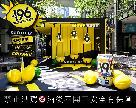 三得利 -196 強勢限時降臨台北信義區,以獨特日系潮流、Z世代最愛的街頭飲酒、派對文化為靈感,打造最具風格感的Pre-Drink聖地「果敢街區-真敢來吧!」,整體視覺以大顆巨型檸檬為主,不只有巨型調酒 Bar試飲活動,更搭配豐富的互動感官體驗,現場設有三大體驗區- Whole 整顆果實(真敢來拍區)、Freeze 瞬凍(急凍瞬間區)、Crush 炸裂(果敢炸裂區),透過日系潮流擺拍、獨家風格拍貼機、棒球九宮格,不只讓消費者全方位體驗三得利-196的魅力,更充分感受三得利-196 獨特的瞬凍炸裂製法如何保留酒體最純粹的果香,帶來與眾不同的清爽口感,實際享受「-196°C」瞬凍炸裂帶來的極致暢快。