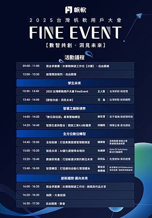 本屆FineEvent以「智慧治理」、「數智動能」、「數據人才」與「孿生未來」四大亮點組成,也特別規劃多場專題演講與實戰案例分享,邀請跨產業標竿企業分享其數位轉型歷程與實務經驗。包括智慧與生產的整合、數位與低碳的雙軸轉型、打造集團營運管理戰情室等議題,讓實際案例成為與會者可落地的數位轉型參考藍圖。
