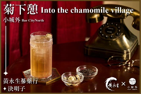 以日式匠人精神著稱的「小城外」,與「黃永生蔘藥行」聯手,以玫瑰四物可樂糖漿、決明子茶與菊花茶為基底,推出「帶露紅」與無酒精款「菊下憩」,揉合玫瑰浪漫意象與大稻埕的沉穩氛圍,一口即是靜謐春光。主打琴酒故事的「發琴吧」,攜手「正新蔘藥行」安神好眠茶,結合胡椒琴酒、白酒醋與黑櫻桃,搭配決明子泡沫,推出「和煦帖」,品飲時如藥師輕拂般療癒,層次分明、草本釋放。