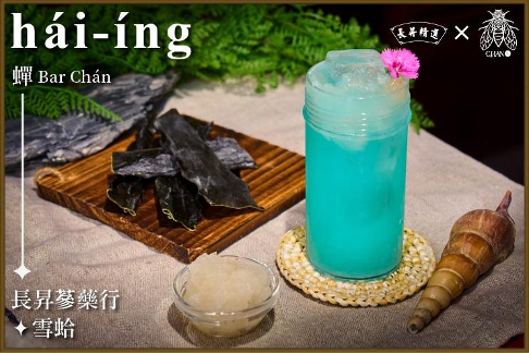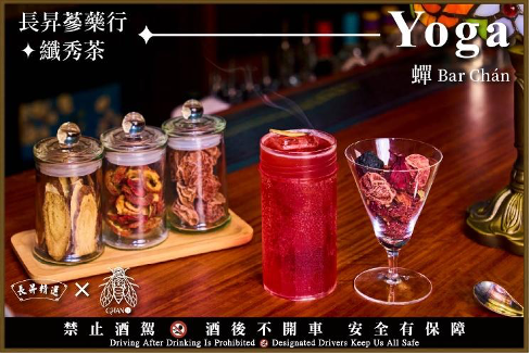 「微醺花園」與「六安堂」合作,使用黃金蟲草花與無花果,打造有酒精與無酒精兩款「心靈雞湯/心寧渴乘」,滋補不苦澀,溫柔養身,宛如午后陽光灑落,為心靈注入儀式感。而「蟬Bar Chán」則與擁有70年歷史的「長昇蔘藥行」攜手,使用雪蛤與纖秀茶發想,調製氣泡款「yoga」與無酒精海洋風味甜品「hái-íng」,加入聖木、紫蘇、藍柑橘等細節層疊,帶來如舌尖瑜珈般的放鬆體驗。