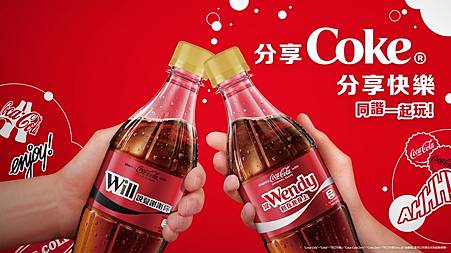今年夏天,「可口可樂」再度揮灑創意,將台灣人喜愛的諧音梗與姓名瓶結合推出「可口可樂」分享瓶,邀請全台消費者在享受「可口可樂」的同時,與親友一起分享開罐的趣味時光,交換著台灣人最愛的諧音日常,將經典的「Share」音概念玩出新高度,每一瓶都成為專屬於你的台式幽默。百款獨家名字語句設計,如「你會帶人來嗎?=你會Darren來嗎?」、「下次一定揪你啦=下次一定Julia」,還有撩人的愛情語錄「愛我就說出來=Edward就說出來」、「一生只愛你一個=Eason只愛你一個」,還有不可少的親情關懷「有你在揪安心=有你在Joanne心」、「你若係受委屈要說=Lina係受委屈要說」,將諧音梗的精神發揮到淋漓盡致,一起蒐集超有梗趣味瓶身,啟動你的諧音魂,分享給更多朋友同樂!