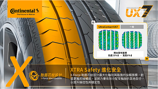 - UltraContact UX7 全能均衡型輪胎,專為 SUV 打造全能均衡之選,『XTRA』技術再升級,安全、耐久、靜音全面進化