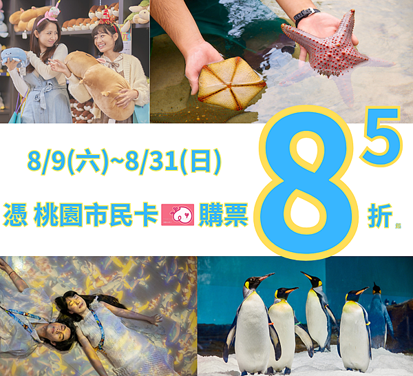 8/9(六)至8/31(日):憑憑本人出示桃園市民卡,現場購票享 85折起 優惠。