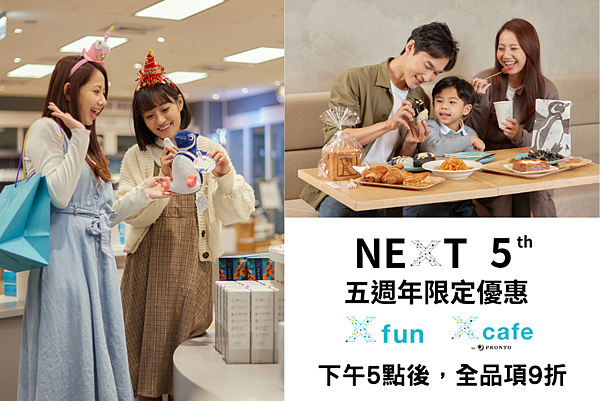 第四波:【五週年感謝祭讓你Fun膽吃】Xfun、Xcafe晚間5點後,全品項9折,餐點、伴手禮都享折