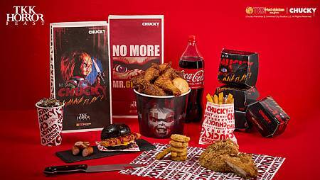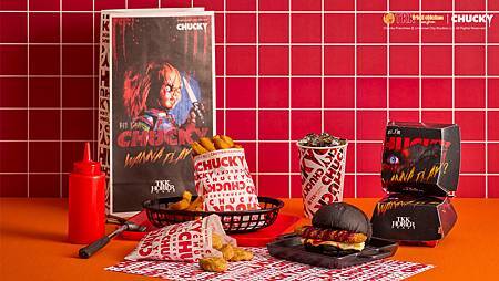 頂呱呱將全系列包裝換上《鬼娃恰吉》主題設計,黑紅配色搭配恰吉的瘋狂笑容與經典血色細節,從漢堡盒、紙袋、派對桶到飲料杯,每一樣都充滿「殺氣美學」,拿在手上就是焦點,拍照打卡絕對是今年萬聖節的最潮百搭!